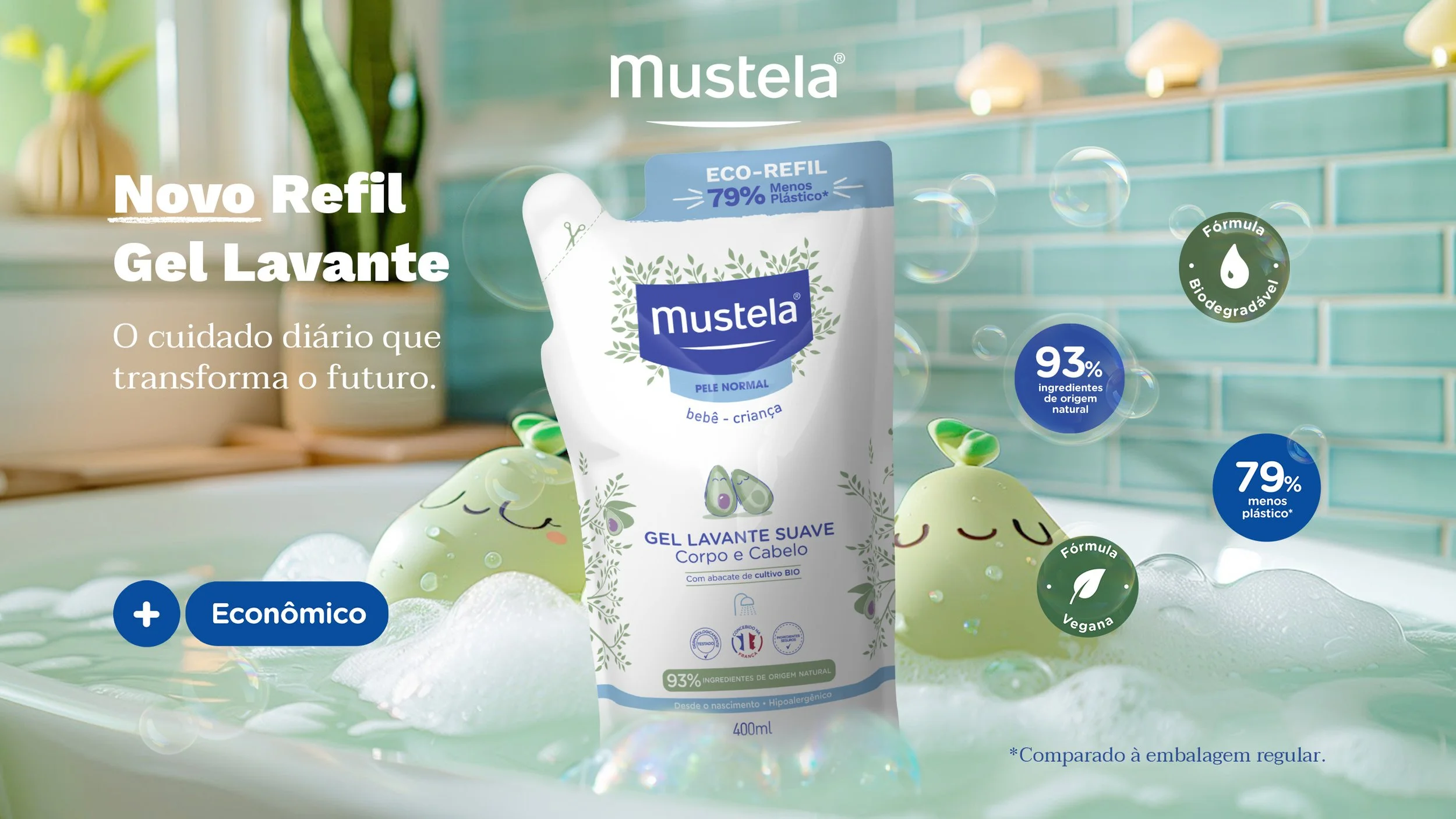 Lançamento do NOVO refil Gel Lavante Mustela, feita em campanha 360.